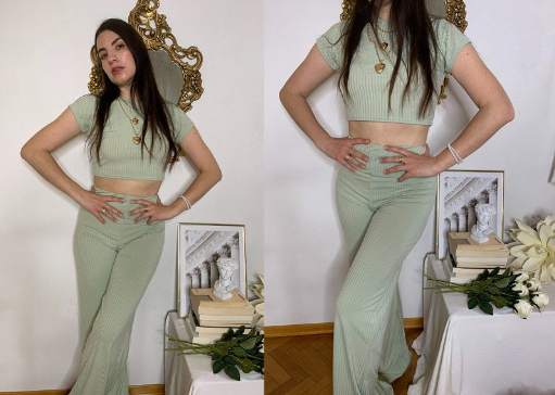 I love to choose any co-ord / suit / two-piece garment accordingly to the season, so for Spring a charming pastel mint green co-ord with long ribbed pants is the one. I also love pastel hues such as baby pink, baby blue and lilac.