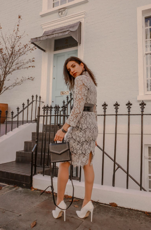 Well, I have spotted this dress online and thought it would look too cool paired up with white and black accessories and I was right. I simply love the lace design and it’s perfect for more formal events or formal outings.