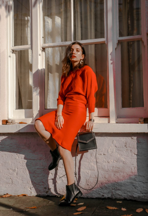 I couldn’t leave out a red choice, could I? This is not actually a dress but a set of top and skirt. Wear it and you will feel like it’s all in one. I love to accessorize with all black deets. It just looks so glam and perfect for day or night as well.