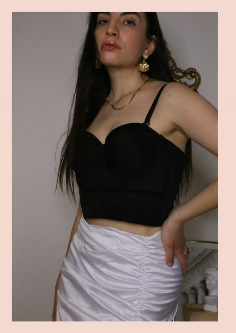 You can finish the look with a mini fluffy bag, a ruched puff size mini bag or a white pearl lil bag and a some dainty jewelry. Corsets are great as an evening wear, but can be easily switched for a day wear if you pair them up with a white shirt underneath and comfy ballerinas shoes. You can also wear them underneath a belted pocket parisian trench coat for that city look. If you have sling back sandals, they are a perfect combo for corsets as they give off that romantic and classy vibe. You can wear pearly headwear, hairpins, pearly necklaces and golden earrings/rings to finish the look. Or a matching hair ribbon, which is super cute and on trend right now!