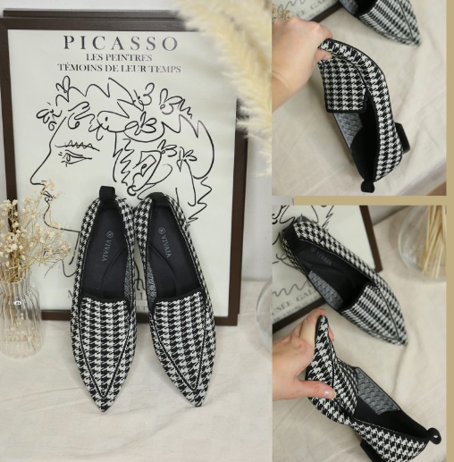 These timeless women’s loafers feature a classic pointy toe aesthetic with an elegant 20MM rubber-coated heel that is both comfortable to wear and eye-catching in style. Designed with a plush microfiber material in a bold houndstooth print and a soft natural herbal insole, these bold loafers are breathable, easy to wear and ideal for slipping on for work, your daily commute and more.